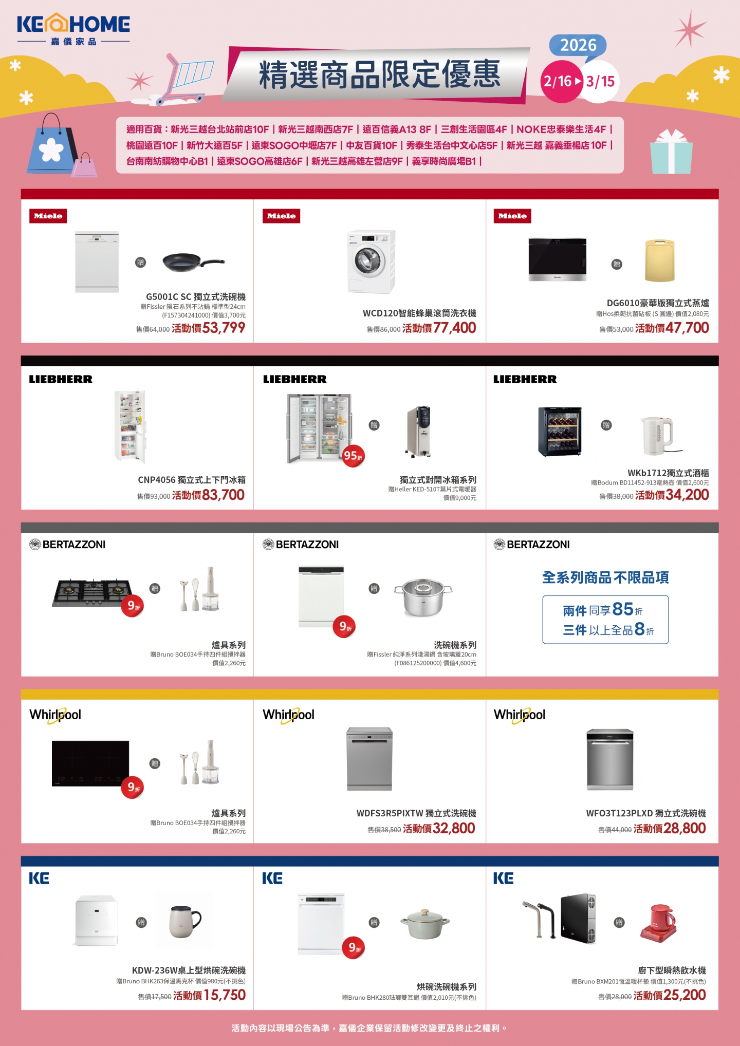 嘉儀家品 百貨限時活動(2026/2/16-3/15)優惠中!